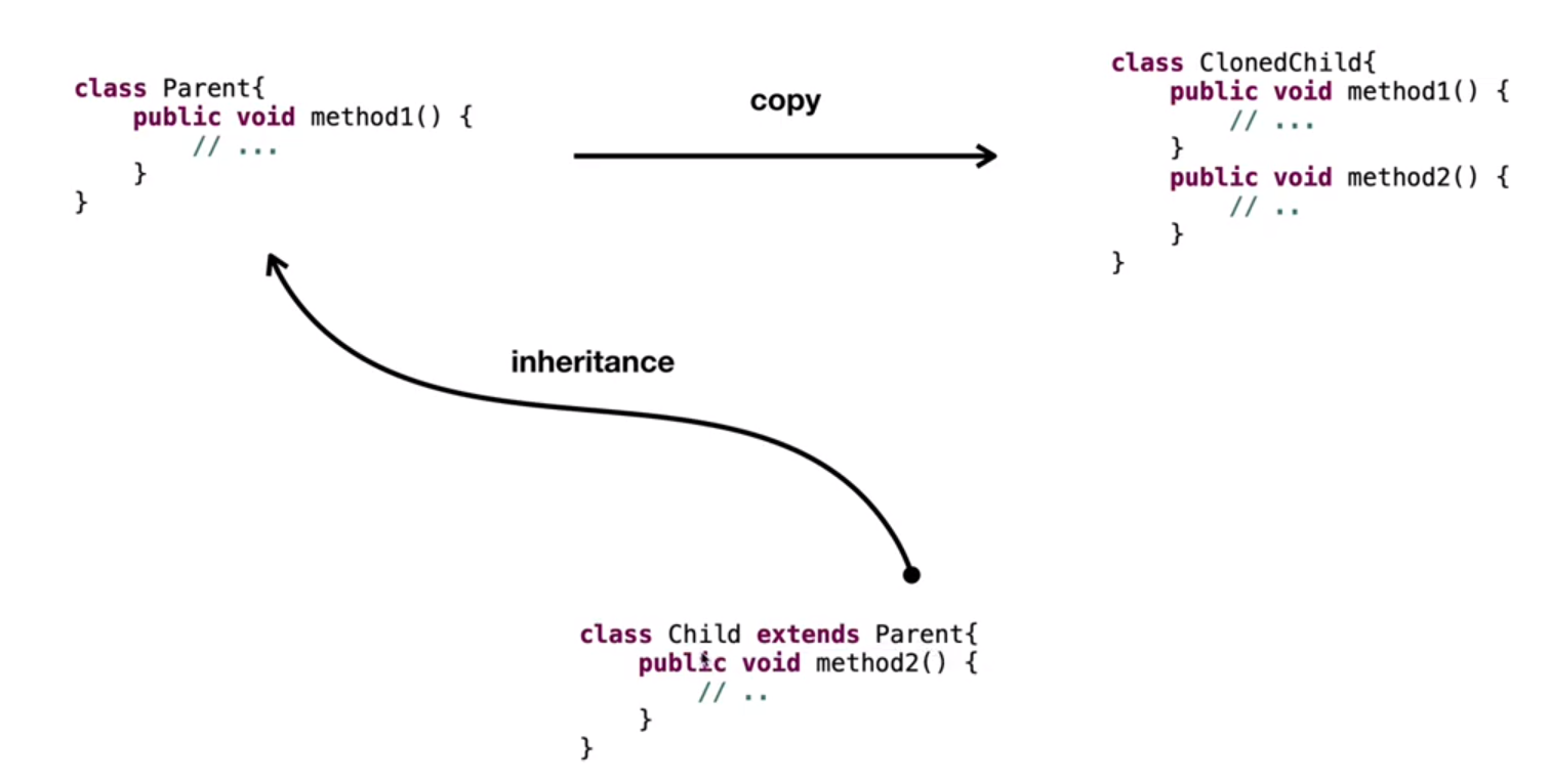 Parent를 copy한 모든 코드를 하나하나 다 직접 수정해야함