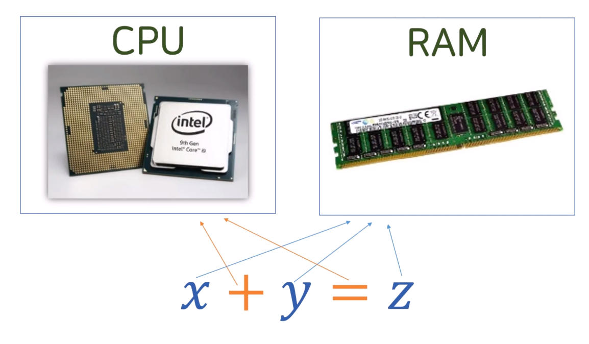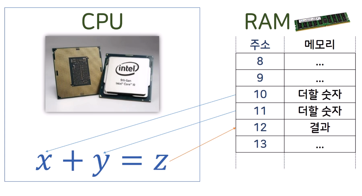 변수를 사용하면 '메모리의 주소를 직접 다루지 않고도' 그 메모리에 데이터가 저장되어 있는 공간을 수학의 변수처럼 직관적으로 사용할 수 있게 해줌