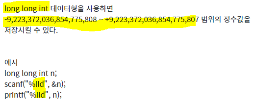 long int num1, num2; // 정수의 입력이므로 - 값도 존재. unsigned 쓸수 없음