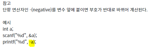 printf("%d", !1); // 참의 반대, 즉 거짓인 0으로 계산됨
