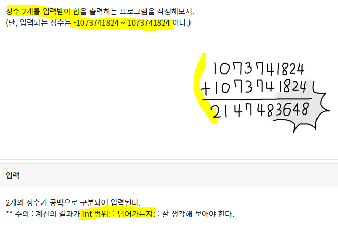 1038.정수 2개 입력받아 합 출력하기1(설명)
